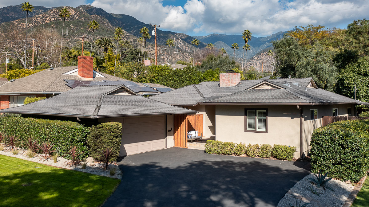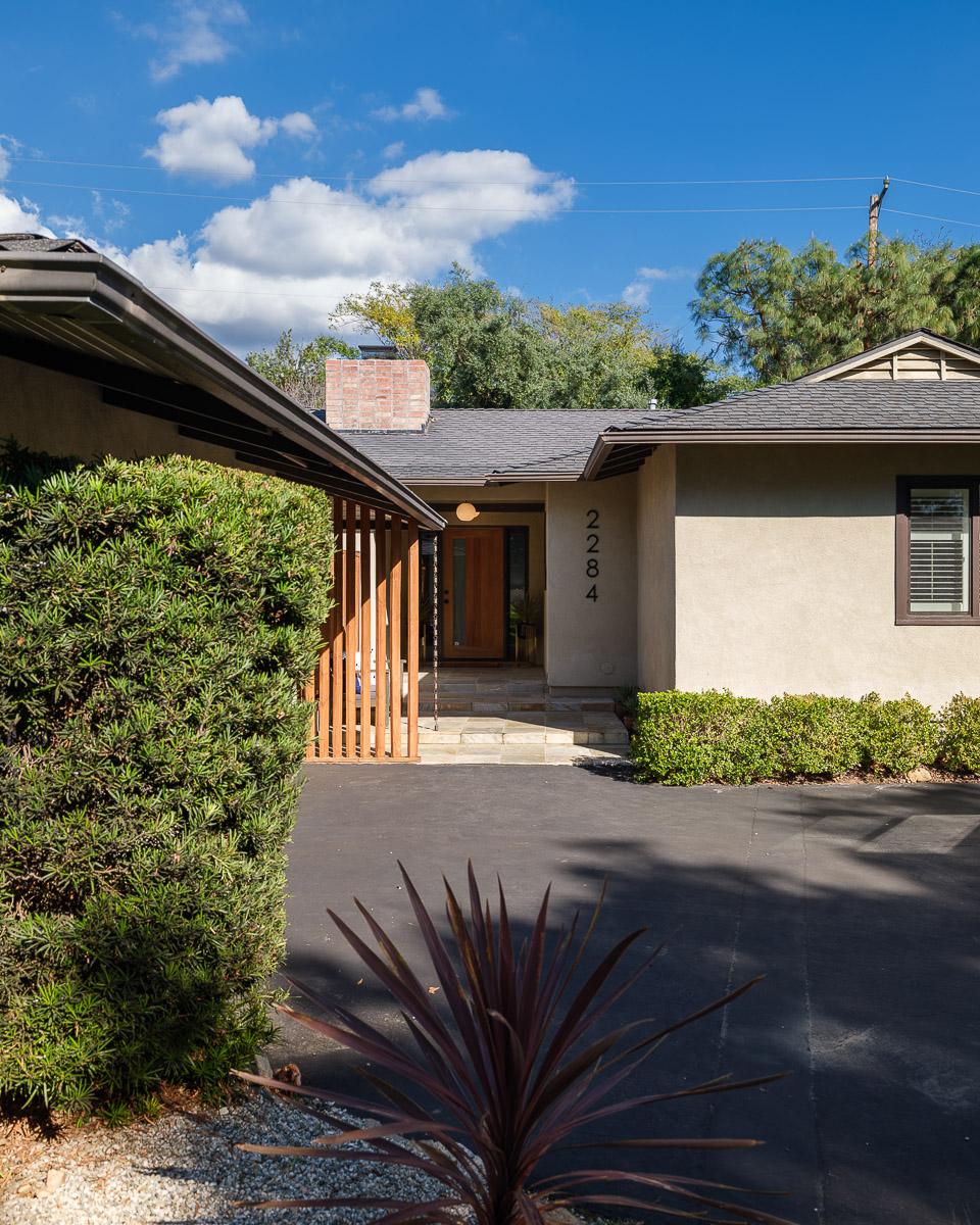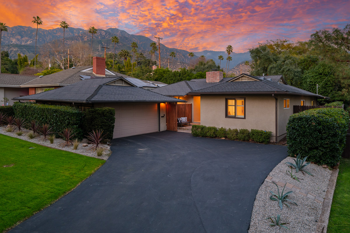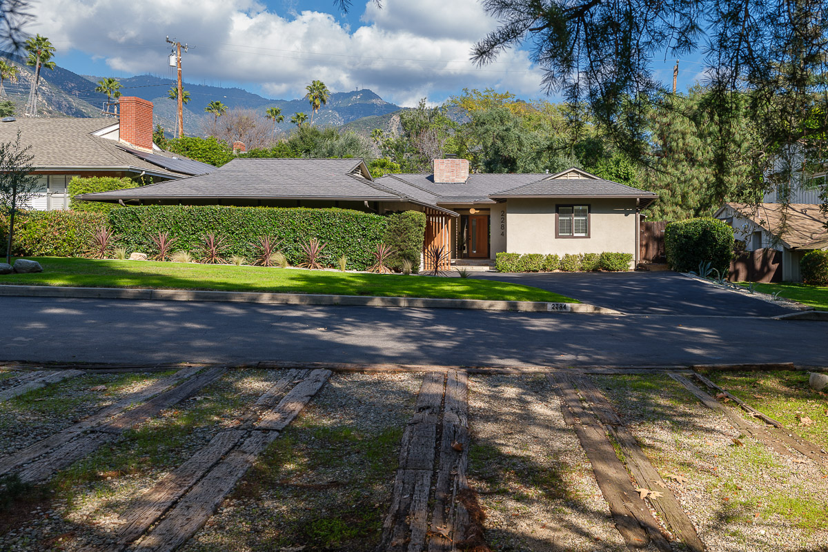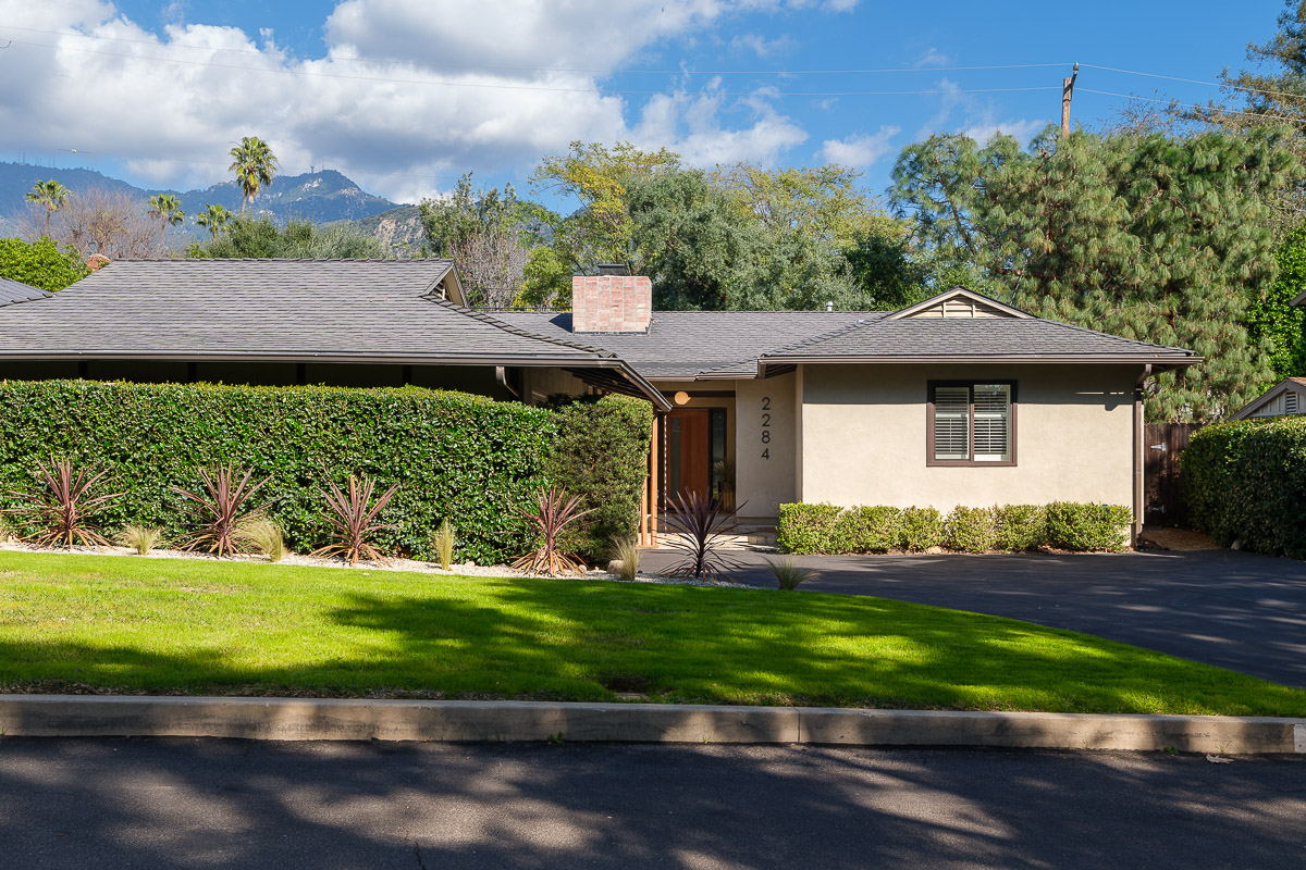 Welcome to this 1957 Mid-Century ranch, with Asian influences, that has been renovated throughout to create an idyllic retreat in our foothills. The 2,143 square foot (measured), single level residence has been redone to celebrate the best of the California lifestyle. There are three spacious bedrooms, including a master suite with an attached office or den and two bedrooms that are en-suite. In addition, there is an expansive living room that is bathed in light and adjoins the elegant formal dining room. The incredible kitchen has been painstakingly remodeled with custom cabinetry, high-end appliances, gleaming quartzite counters and an open concept that looks into the family room with a separate breakfast area. All of the bathrooms have been done with statement tile, architectural lighting and beautiful fixtures. No detail has been overlooked. Some of the highlights are the refinished wood floors, tall windows, a central black brick fireplace and a rich wood slatted wall concealing a hidden closet.