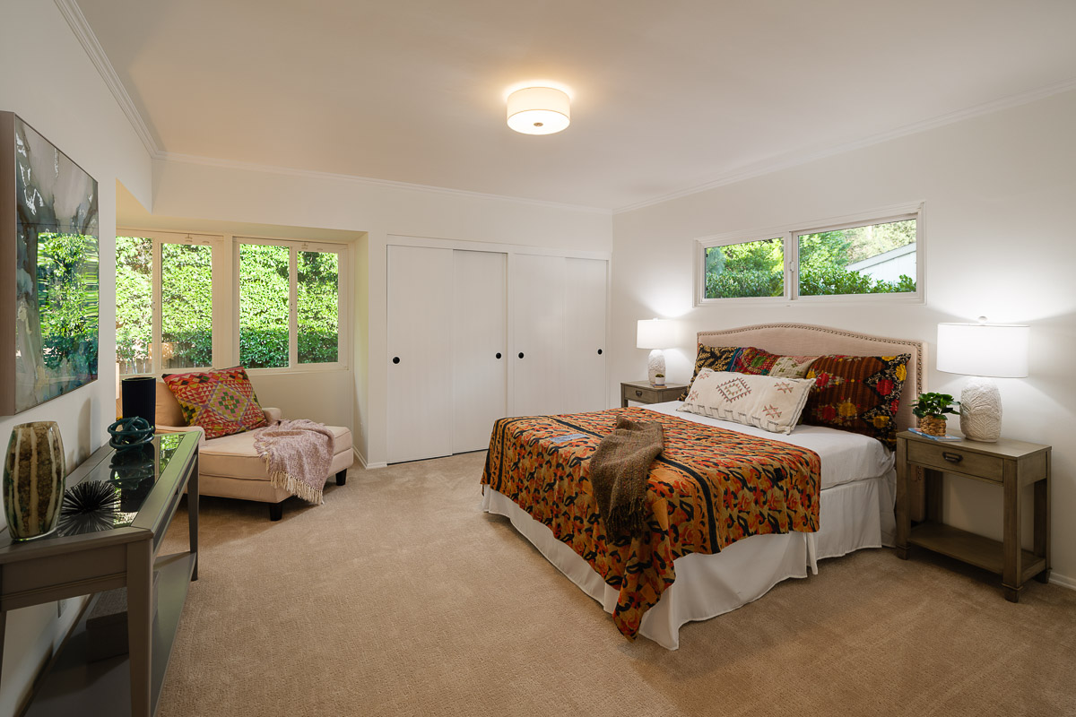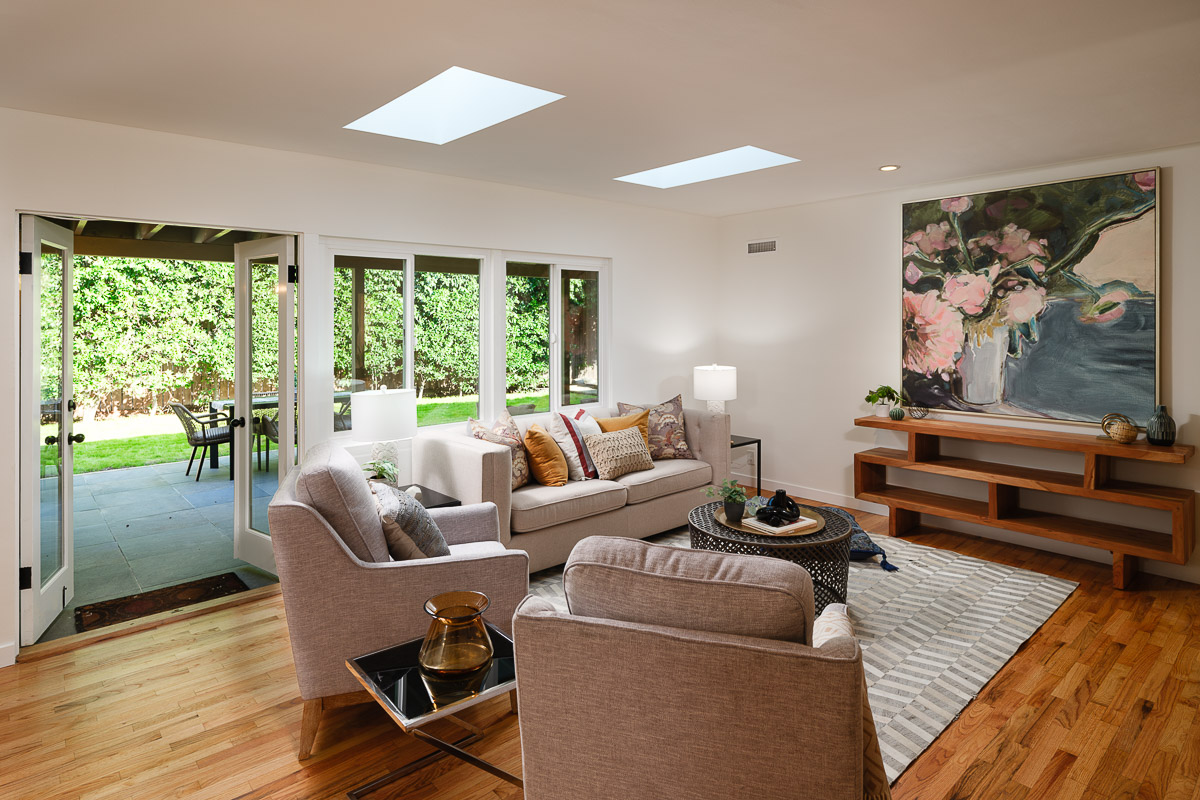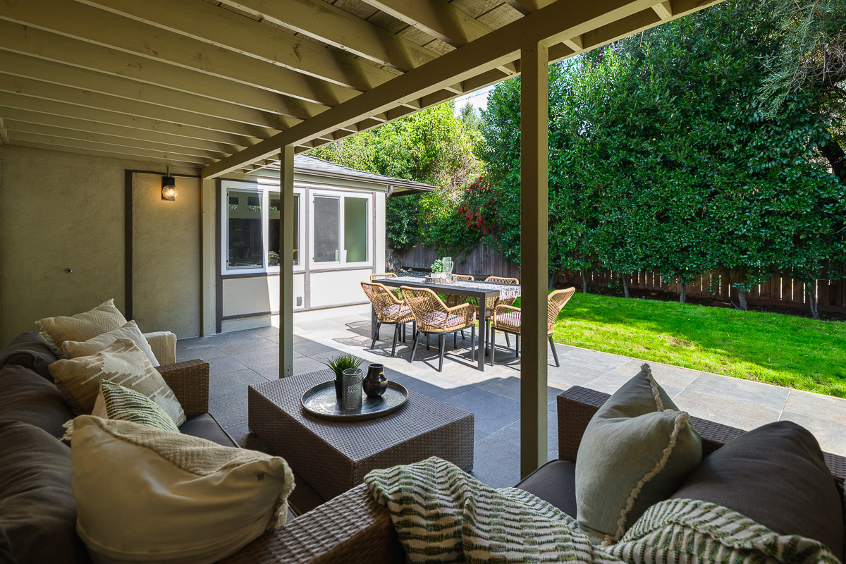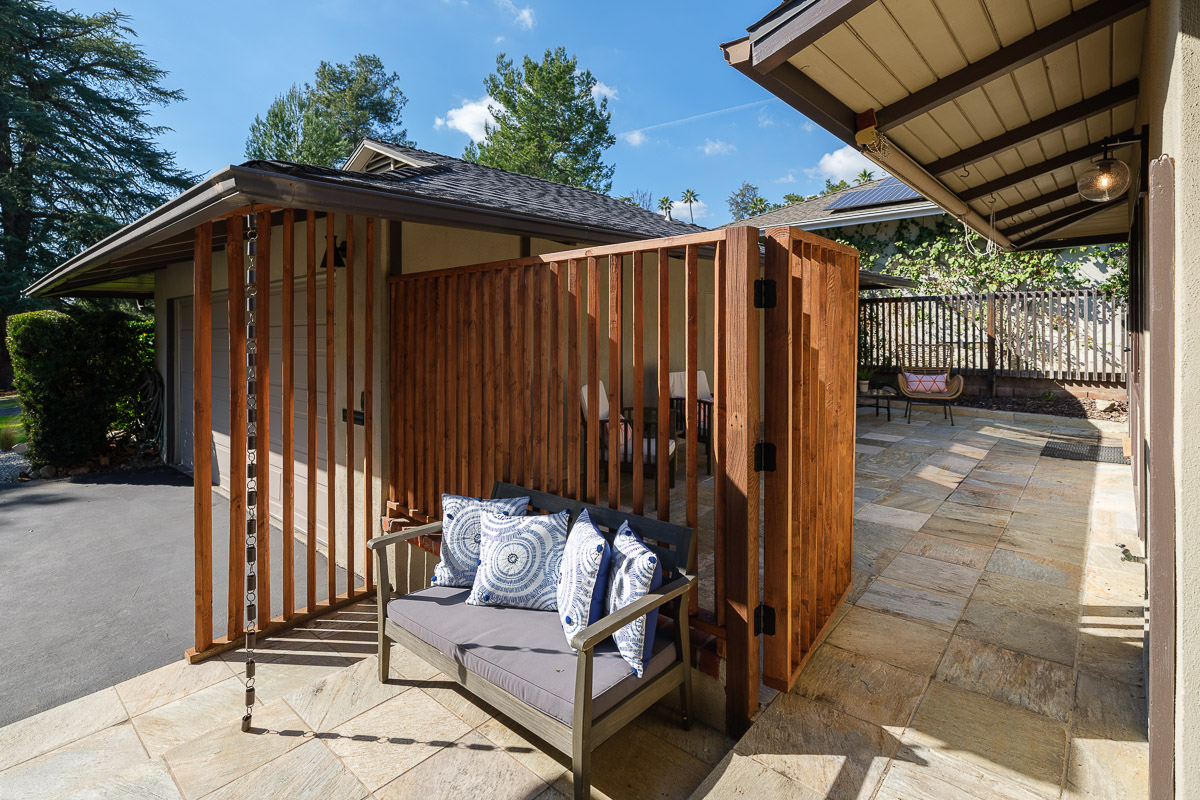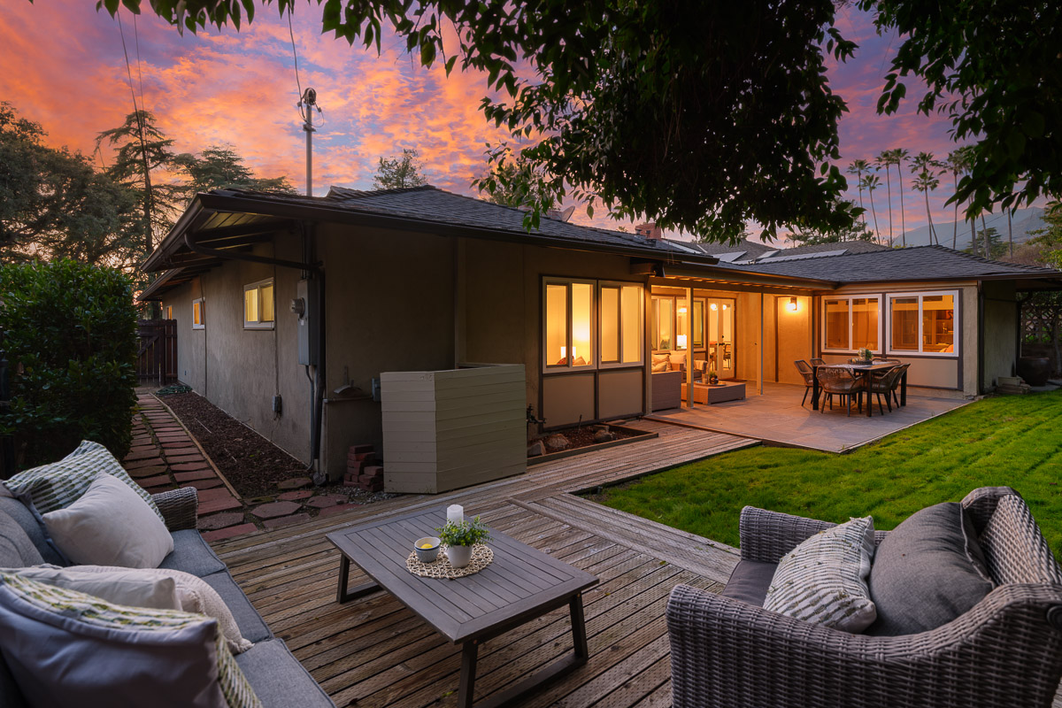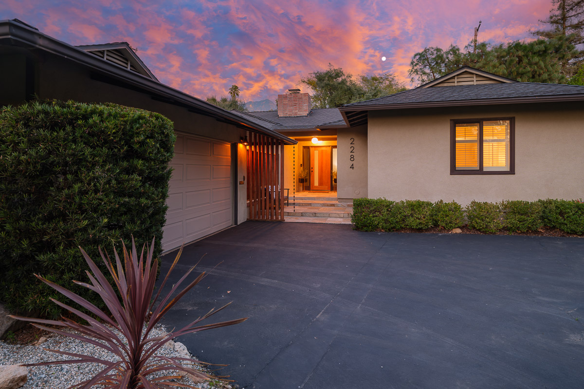 Welcome to this 1957 Mid-Century ranch, with Asian influences, that has been renovated throughout to create an idyllic retreat in our foothills. The 2,143 square foot (measured), single level residence has been redone to celebrate the best of the California lifestyle. There are three spacious bedrooms, including a master suite with an attached office or den and two bedrooms that are en-suite. In addition, there is an expansive living room that is bathed in light and adjoins the elegant formal dining room. The incredible kitchen has been painstakingly remodeled with custom cabinetry, high-end appliances, gleaming quartzite counters and an open concept that looks into the family room with a separate breakfast area. All of the bathrooms have been done with statement tile, architectural lighting and beautiful fixtures. No detail has been overlooked. Some of the highlights are the refinished wood floors, tall windows, a central black brick fireplace and a rich wood slatted wall concealing a hidden closet.