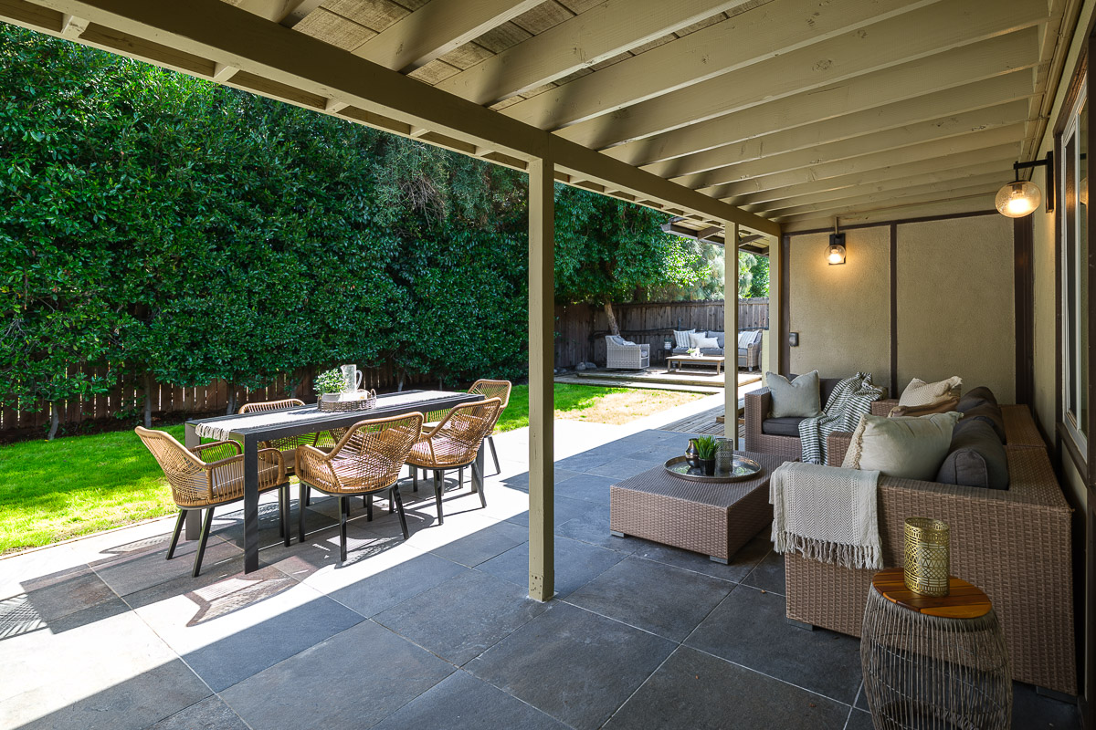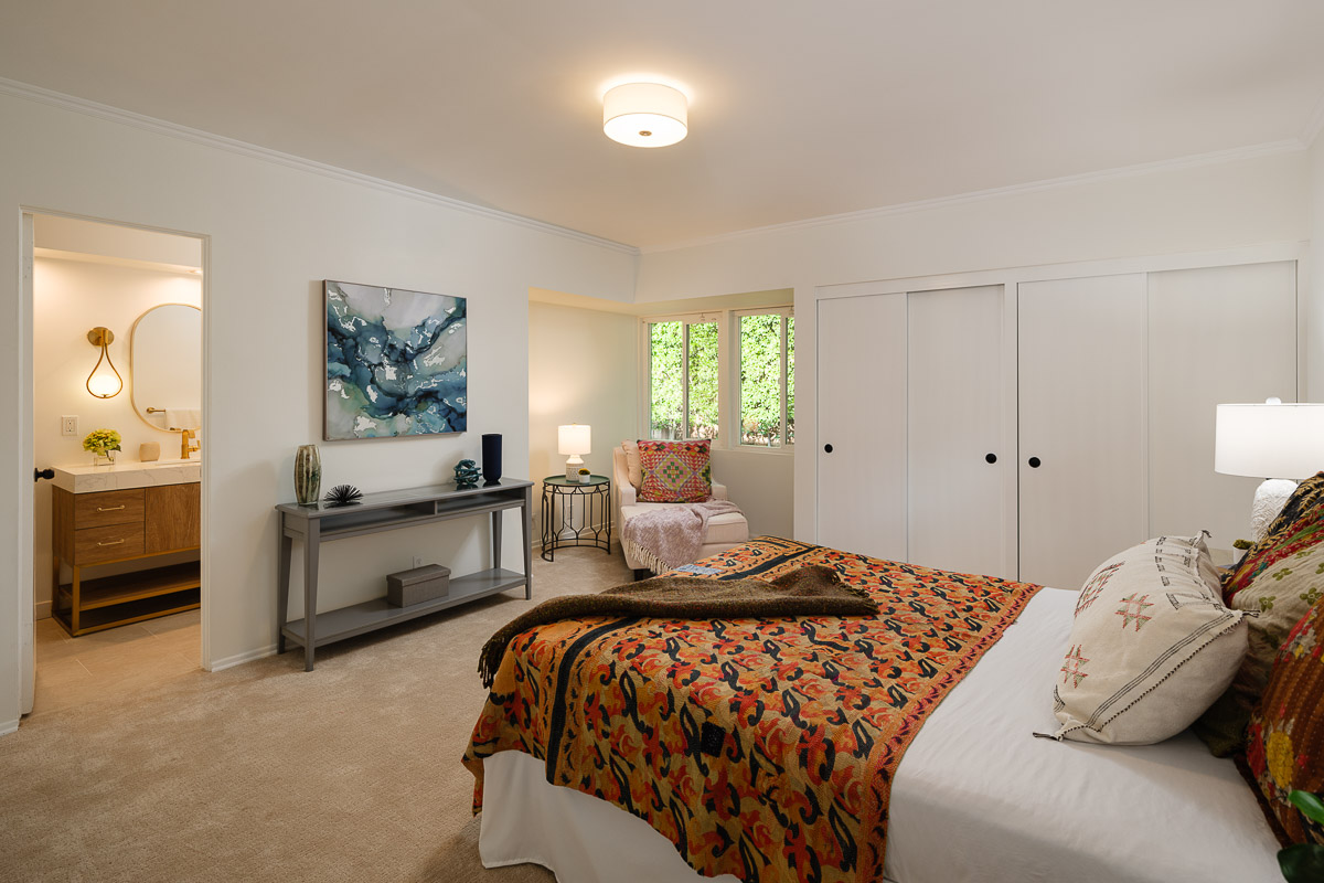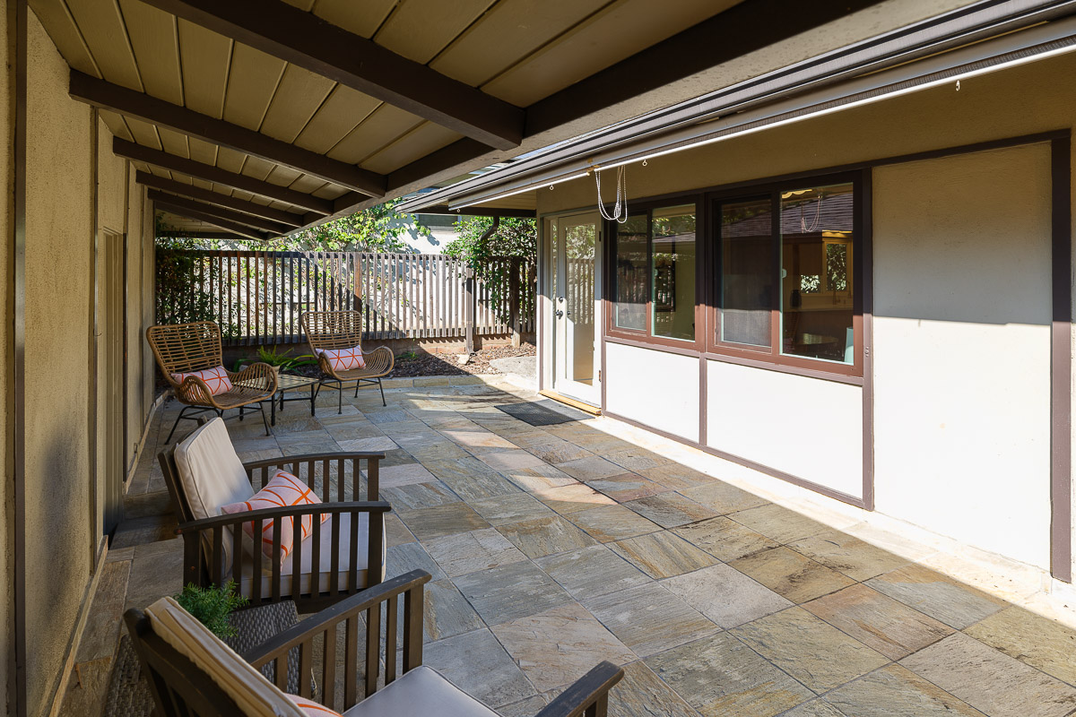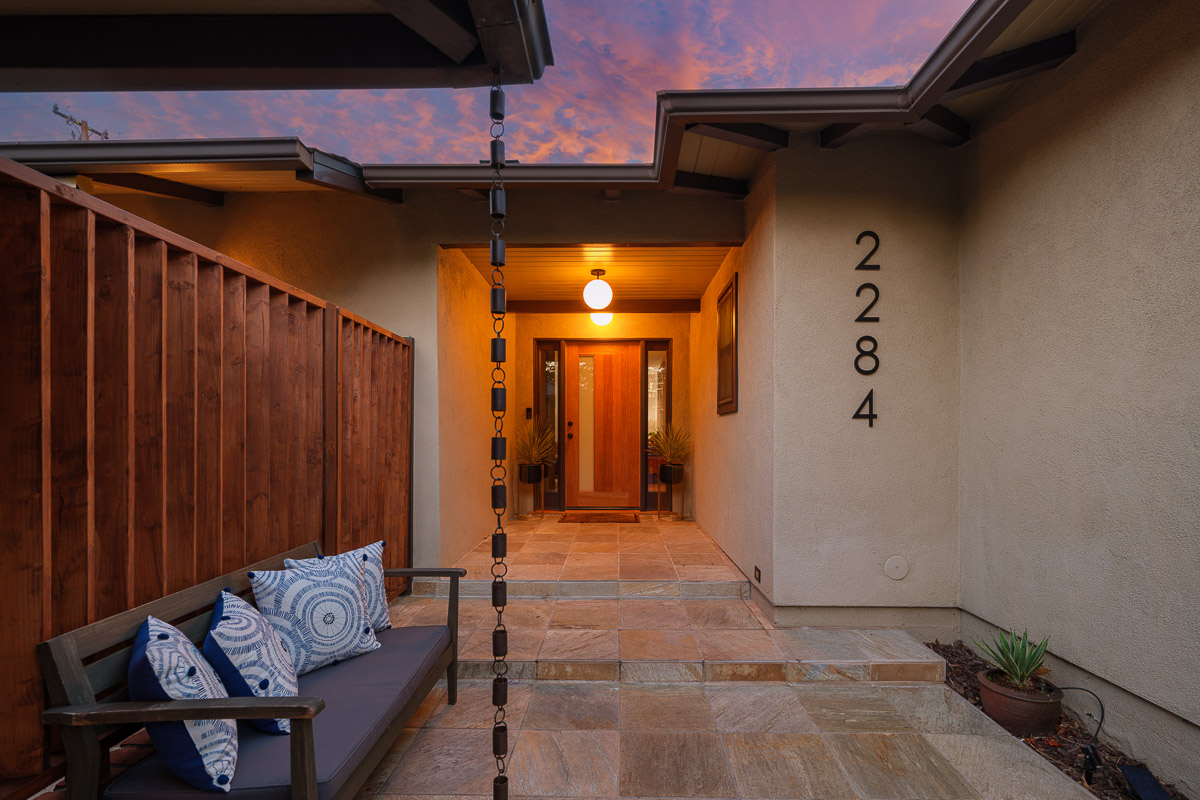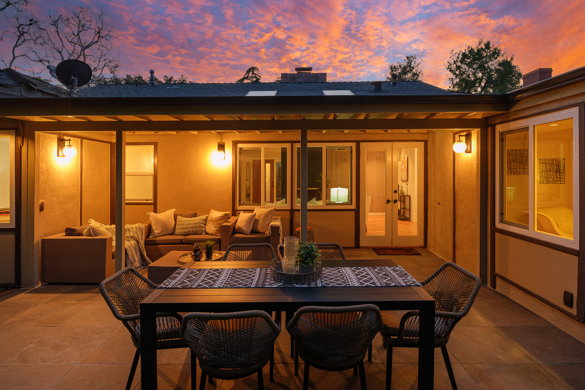 Welcome to this 1957 Mid-Century ranch, with Asian influences, that has been renovated throughout to create an idyllic retreat in our foothills. The 2,143 square foot (measured), single level residence has been redone to celebrate the best of the California lifestyle. There are three spacious bedrooms, including a master suite with an attached office or den and two bedrooms that are en-suite. In addition, there is an expansive living room that is bathed in light and adjoins the elegant formal dining room. The incredible kitchen has been painstakingly remodeled with custom cabinetry, high-end appliances, gleaming quartzite counters and an open concept that looks into the family room with a separate breakfast area. All of the bathrooms have been done with statement tile, architectural lighting and beautiful fixtures. No detail has been overlooked. Some of the highlights are the refinished wood floors, tall windows, a central black brick fireplace and a rich wood slatted wall concealing a hidden closet.