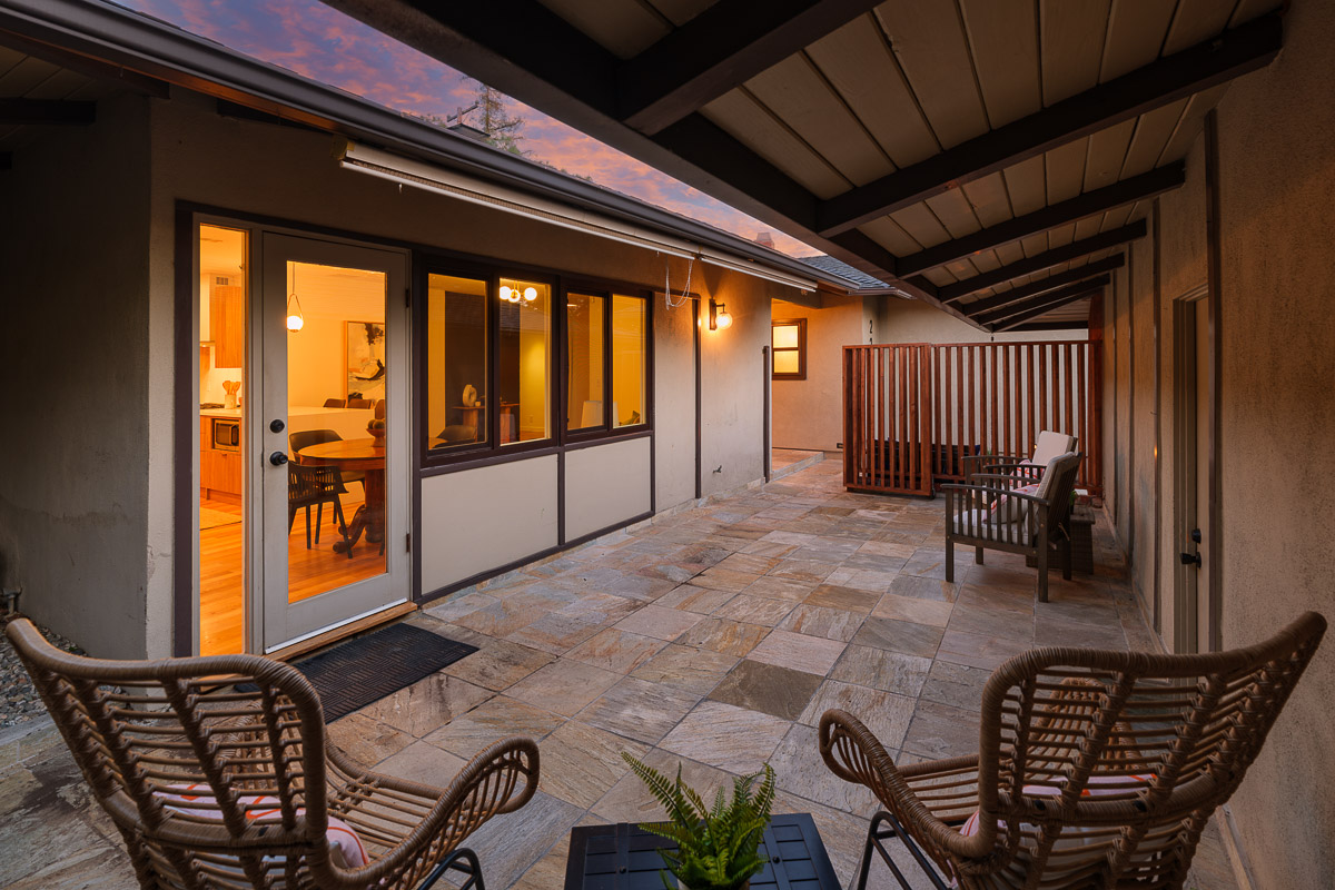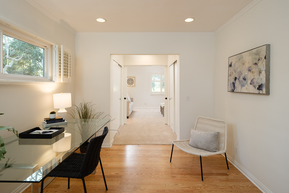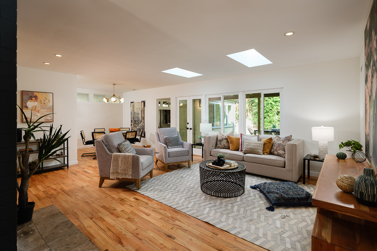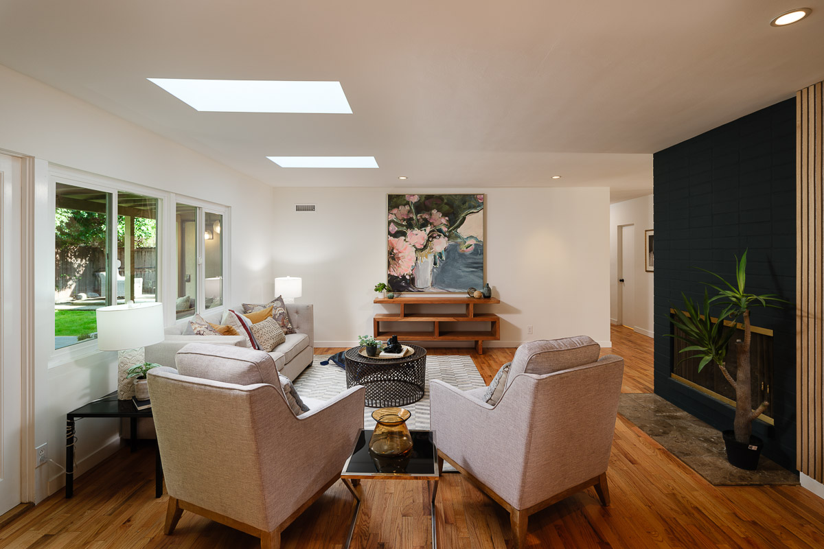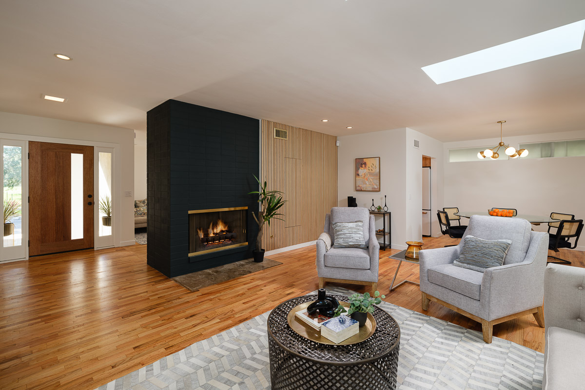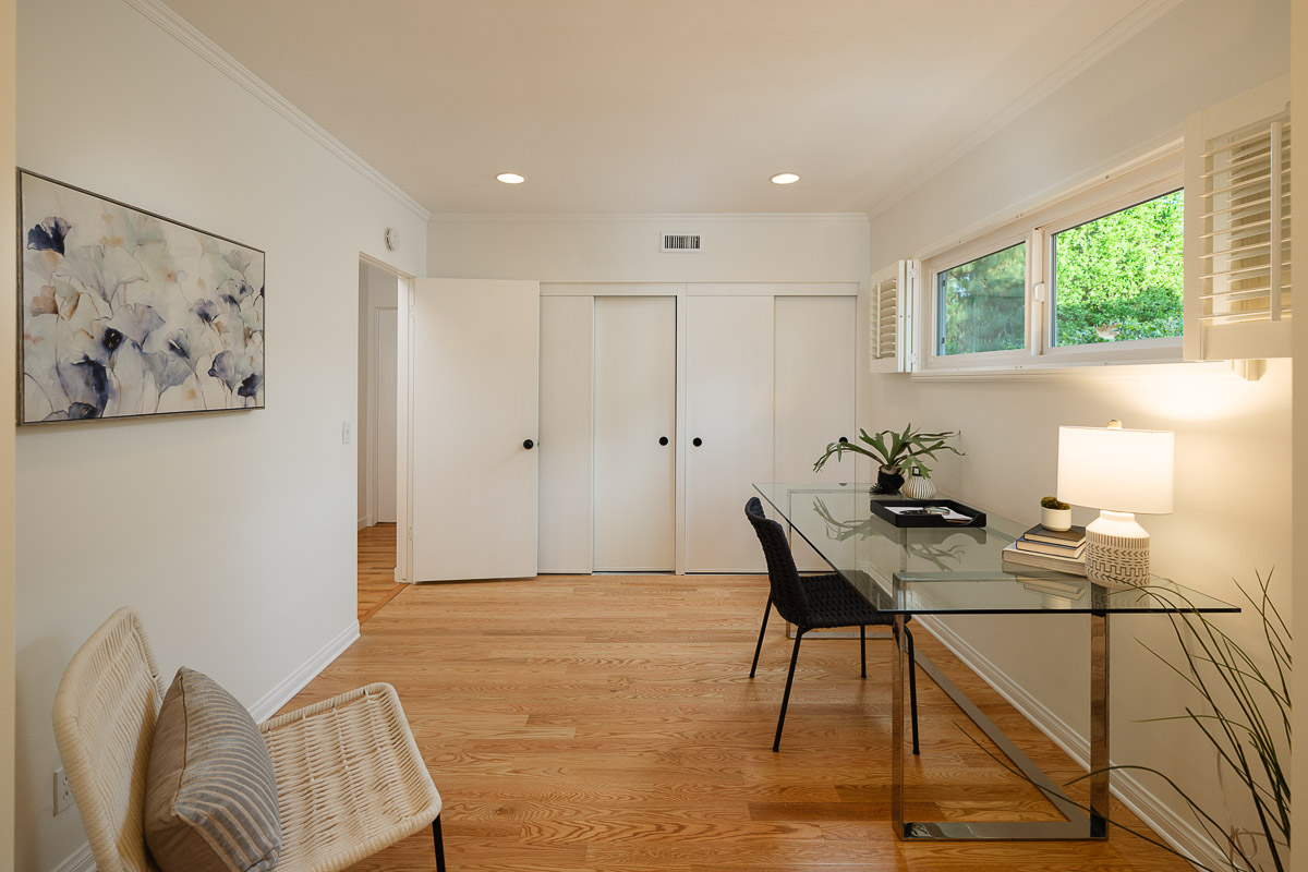 Welcome to this 1957 Mid-Century ranch, with Asian influences, that has been renovated throughout to create an idyllic retreat in our foothills. The 2,143 square foot (measured), single level residence has been redone to celebrate the best of the California lifestyle. There are three spacious bedrooms, including a master suite with an attached office or den and two bedrooms that are en-suite. In addition, there is an expansive living room that is bathed in light and adjoins the elegant formal dining room. The incredible kitchen has been painstakingly remodeled with custom cabinetry, high-end appliances, gleaming quartzite counters and an open concept that looks into the family room with a separate breakfast area. All of the bathrooms have been done with statement tile, architectural lighting and beautiful fixtures. No detail has been overlooked. Some of the highlights are the refinished wood floors, tall windows, a central black brick fireplace and a rich wood slatted wall concealing a hidden closet.