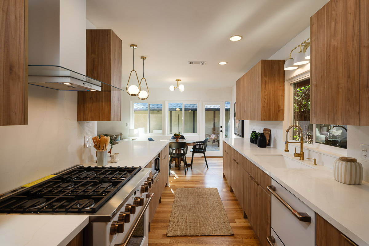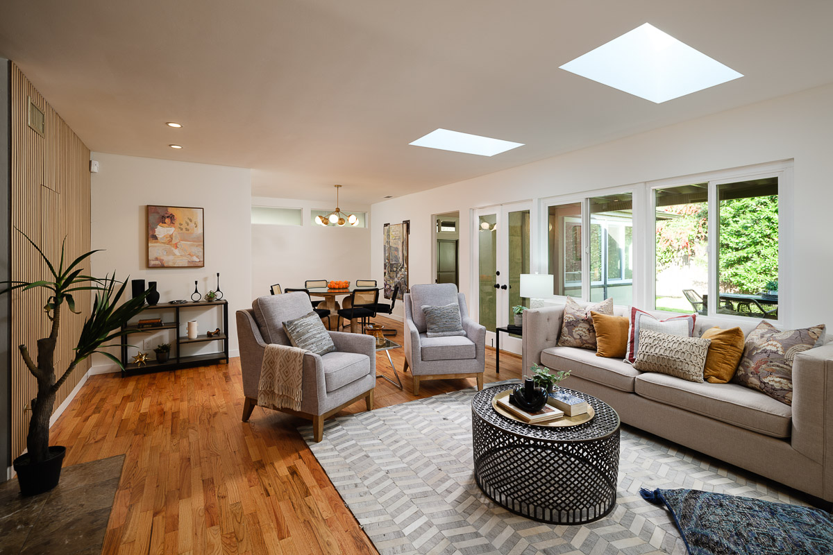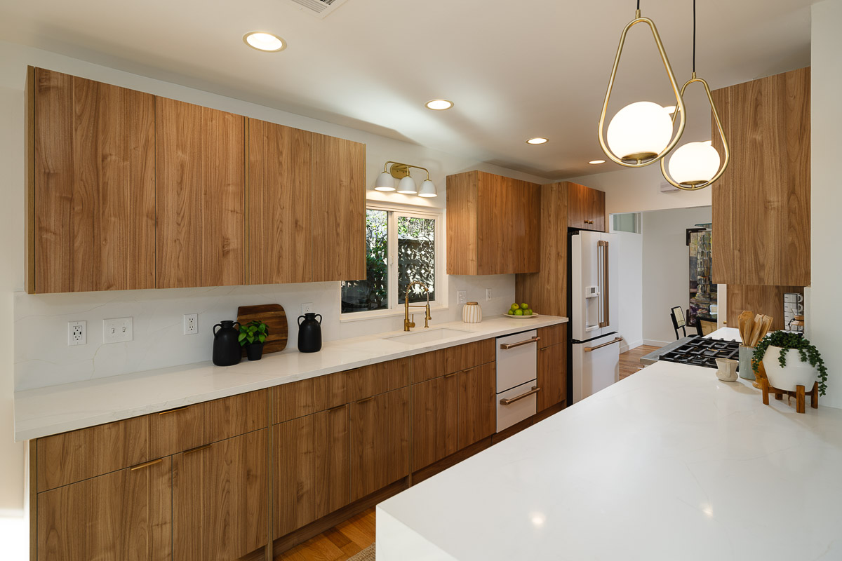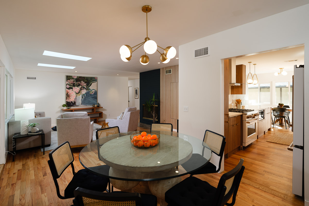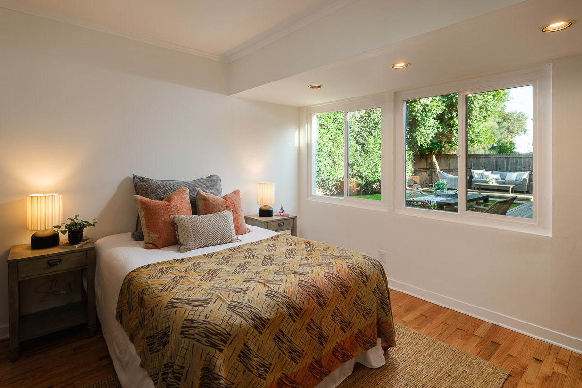 Welcome to this 1957 Mid-Century ranch, with Asian influences, that has been renovated throughout to create an idyllic retreat in our foothills. The 2,143 square foot (measured), single level residence has been redone to celebrate the best of the California lifestyle. There are three spacious bedrooms, including a master suite with an attached office or den and two bedrooms that are en-suite. In addition, there is an expansive living room that is bathed in light and adjoins the elegant formal dining room. The incredible kitchen has been painstakingly remodeled with custom cabinetry, high-end appliances, gleaming quartzite counters and an open concept that looks into the family room with a separate breakfast area. All of the bathrooms have been done with statement tile, architectural lighting and beautiful fixtures. No detail has been overlooked. Some of the highlights are the refinished wood floors, tall windows, a central black brick fireplace and a rich wood slatted wall concealing a hidden closet.