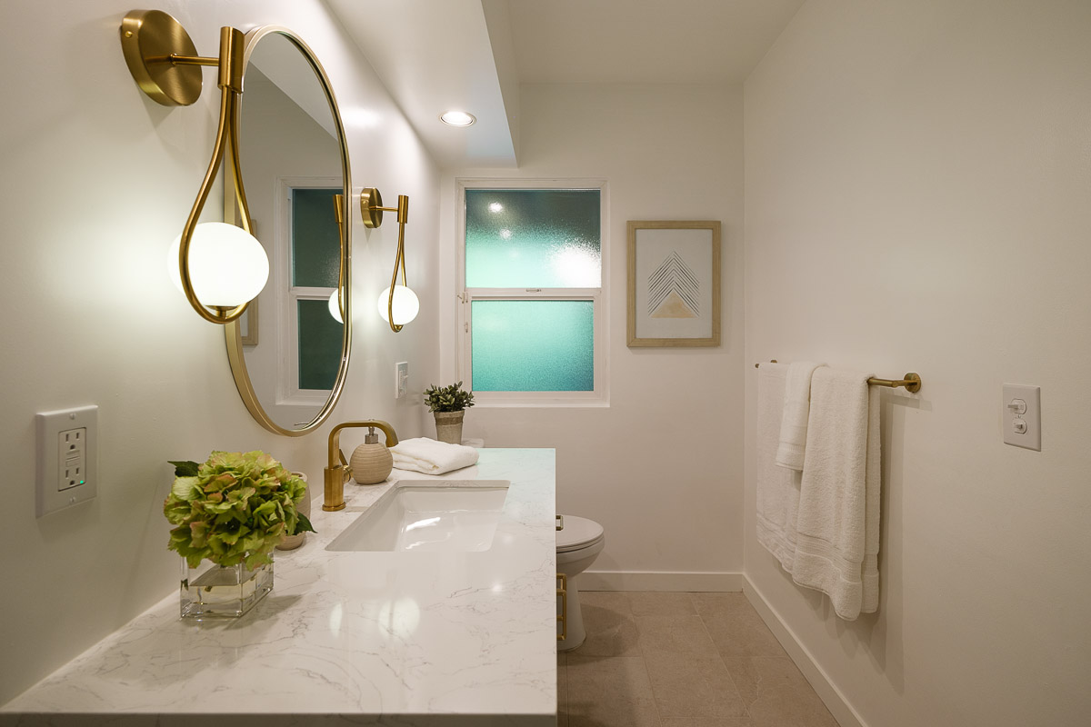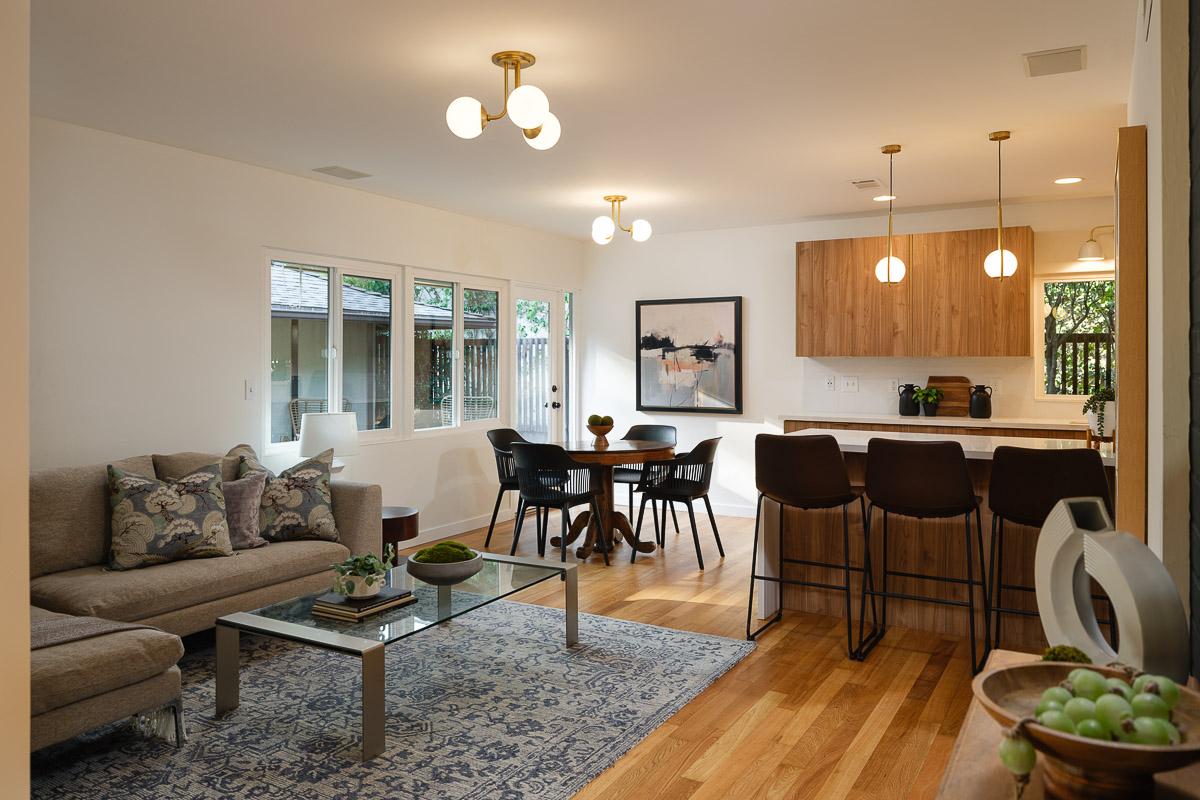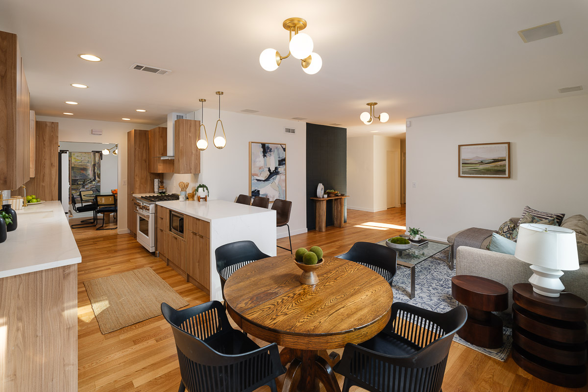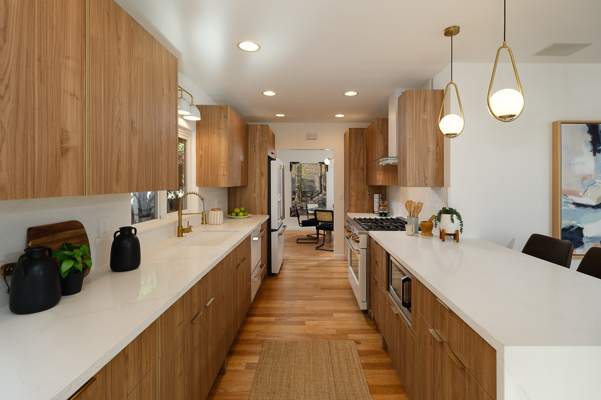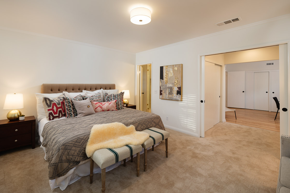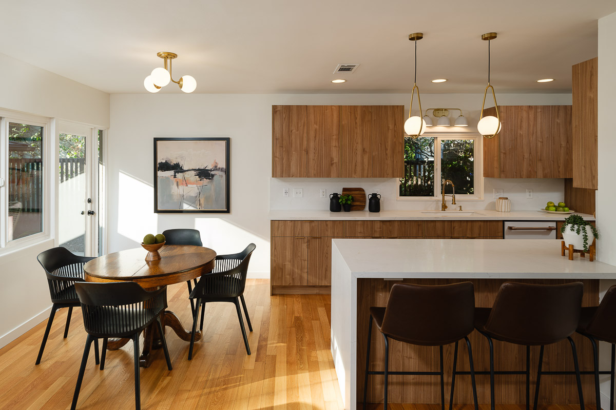 Welcome to this 1957 Mid-Century ranch, with Asian influences, that has been renovated throughout to create an idyllic retreat in our foothills. The 2,143 square foot (measured), single level residence has been redone to celebrate the best of the California lifestyle. There are three spacious bedrooms, including a master suite with an attached office or den and two bedrooms that are en-suite. In addition, there is an expansive living room that is bathed in light and adjoins the elegant formal dining room. The incredible kitchen has been painstakingly remodeled with custom cabinetry, high-end appliances, gleaming quartzite counters and an open concept that looks into the family room with a separate breakfast area. All of the bathrooms have been done with statement tile, architectural lighting and beautiful fixtures. No detail has been overlooked. Some of the highlights are the refinished wood floors, tall windows, a central black brick fireplace and a rich wood slatted wall concealing a hidden closet.