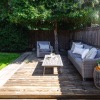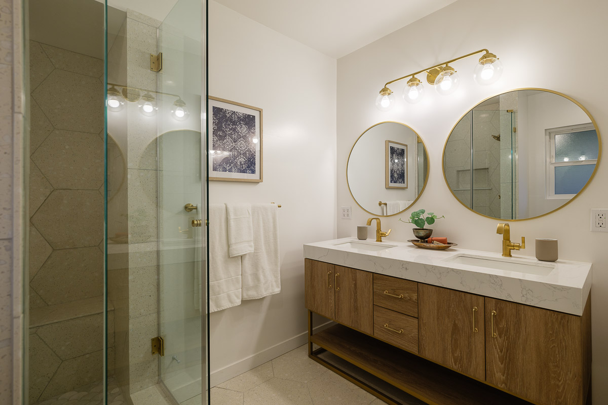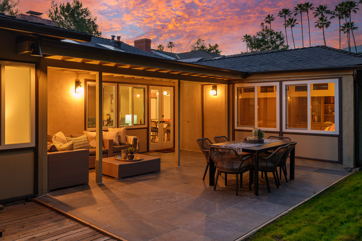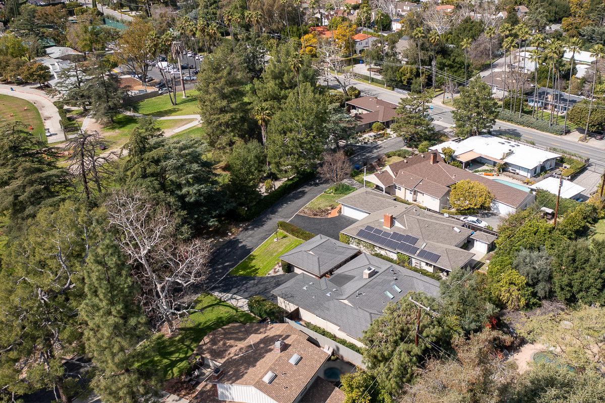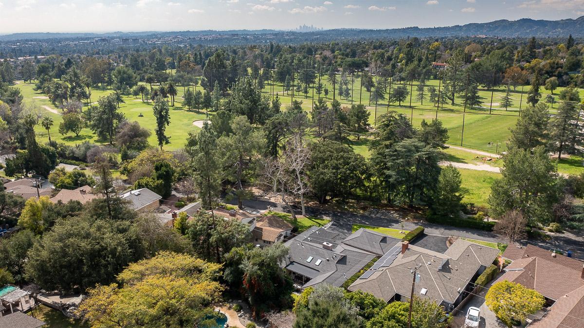 This country club neighborhood home is a showcase property and ideal for entertaining. It has three distinct patios that frame the structure. There is a side patio off the kitchen that is equally perfect for taking your morning coffee or having intimate dinner parties. The backyard has two spaces for relaxing, celebrating or simply reflecting, including a wide patio and a step-up deck. The 13,748 square foot parcel is sited on a private cul-de-sac that runs along the east side of the verdant Altadena Golf Course and includes the space directly opposite the road allowing for a bonus play area, three additional parking spaces, a secret garden or, of course, to keep open to allow for unencumbered views across the park-like green.